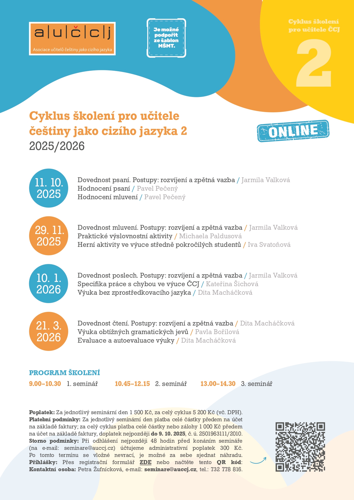 Cyklus školení pro učitele češtiny jako cizího jazyka 2 – 2025/2026 (online)